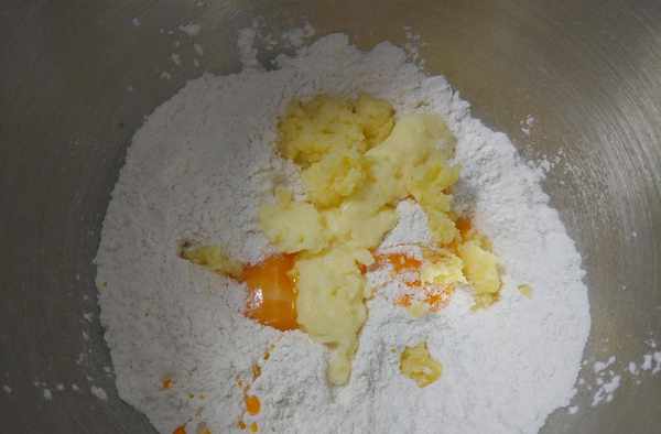 通常制備的卡仕達醬是要放上黃油來增加入口性的,這裡是為瞭做面包特地將黃油選擇和面團一同加入。