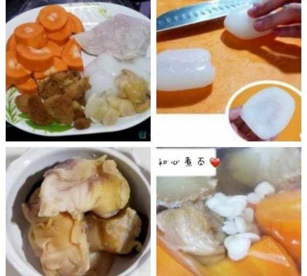 食材日月魚6~8粒猴頭菇4朵紫花果4~5粒響螺頭3粒北芪適量黨蔘適量淮山適量