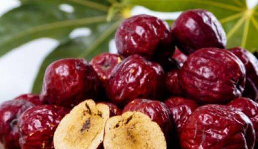 紅棗味甘性溫、入脾胃經,有補中益氣,養血安神,強筋壯骨、補血行氣、滋頤潤顏之功效。紅棗含有大量的糖類物質,主要為葡萄糖,也含有果糖、蔗糖,以及由葡萄糖和果糖組成的低聚糖等;並含有大量的維生素C、核黃素、硫胺素、胡蘿卜素、尼克酸等多種維生素,具有較強的補養作用,能提高人體免疫功能,增強抗病能力。紅棗益血安神的功能,能起到補血的作用,對早泄和陽痿患者有很好的食療效果。