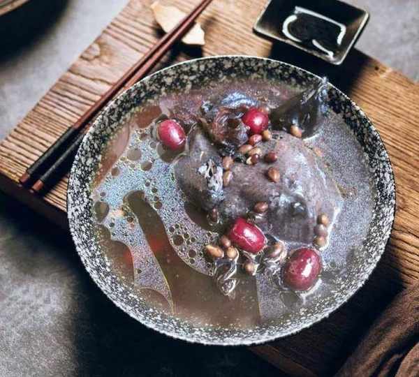 紅棗桂圓烏雞湯:烏雞湯是廣東省傳統的漢族名菜,以烏雞、阿膠、黃精、桂圓、紅棗、枸杞等食材制作而成。