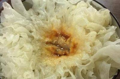 1.先將白木耳泡軟如是新鮮白目耳洗凈即可在切至適當大小