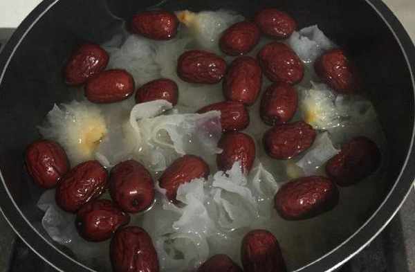 把洗好的白木耳與紅棗一同入鍋熬煮至白目耳煮爛為止在加入少許冰糖即可