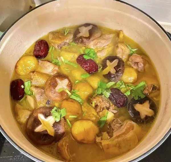 主要食材:板栗,香菇,紅棗,生薑,雞。