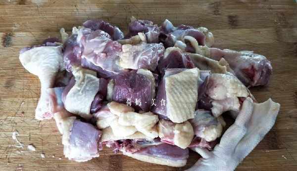 鴨肉清洗幹凈控水,剁大小合適的塊。