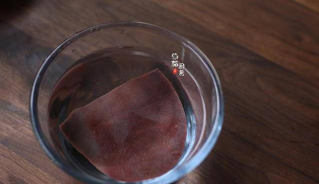 1.先準備一塊豬肝,不需要太多,大概一個巴掌左右的分量。提前用清水泡洗幹凈豬肝,多換幾次清水,泡出肝臟裡的雜質和血水。