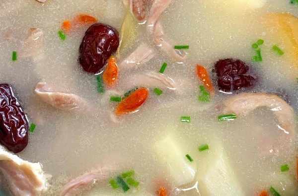 4、時間到瞭之後,再放入山藥繼續煮20分鐘。最後加入食鹽和枸杞,攪拌均勻入味即可出鍋。