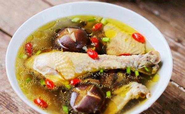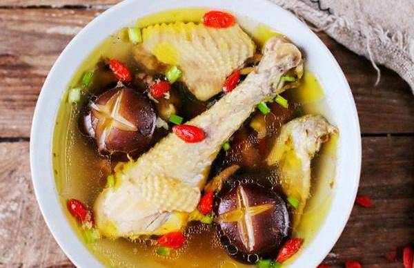 雞肉焯好水後撈出清洗幹凈,在放入高壓鍋中,同時放入生薑片和香菇,在放入適量的清水,等燉的差不多瞭,在放入食鹽和枸杞,在煮個五分鐘就可以出鍋瞭,在吃的時候在撒一把的蔥花,其實最好的方法是用砂鍋熬煮,這樣味道會更鮮,就是需要的時間會長一點!