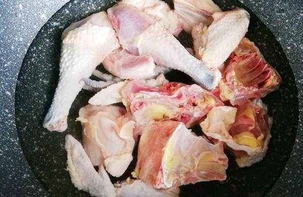 切好的雞肉,冷水入鍋進行焯水,這樣不僅可以去除雞肉的腥氣,吃起來味道也會更鮮,皮爽肉滑的好吃極瞭。