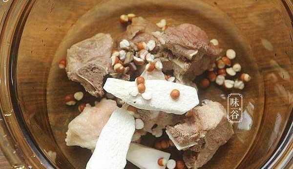 【材料】:核桃12顆、芡實1把、淮山(山藥)20克、幹冬菇5朵、豬扇骨400克、薑2片、鹽適量、