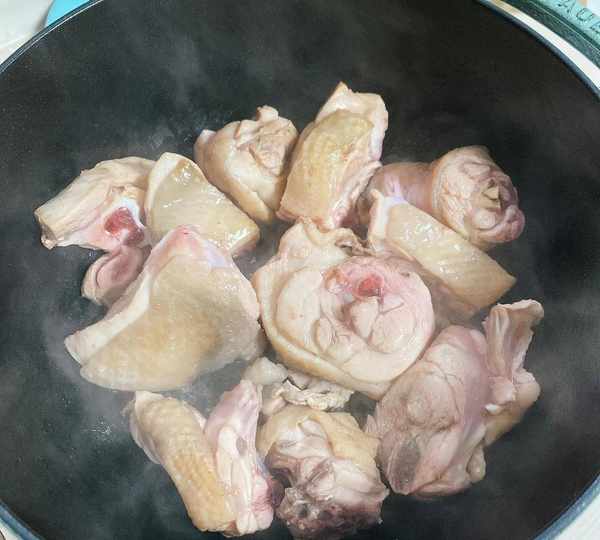 4. 雞腿剁大塊,除毛、清血塊後瀝幹