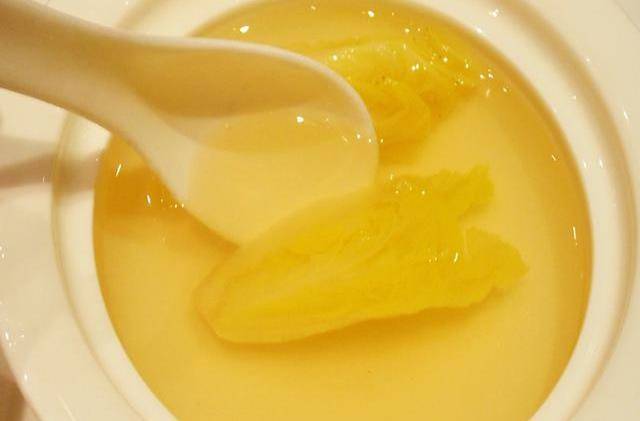 在制作菜品之前首先要制作高湯,而高湯又有清湯和濃湯之分。開水白菜所用的便是清湯,最主要的原料便是用雞肉進行熬制,而且湯汁必須清澈見底,味道又鮮又香。為瞭能夠使湯汁的味道更加豐富,還需要添加輔料,比如豬排骨、鴨、幹貝等等。