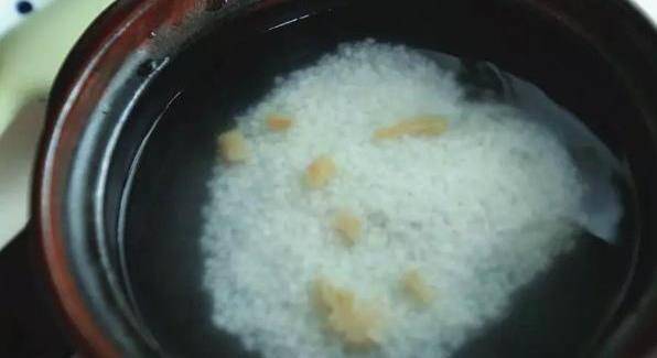 4.制作海鮮粥的時候,先把幹貝下入鍋中和大米一起燉煮,隻有久煮幹貝的香味才能充分釋放,時間短瞭煮不出幹貝的鮮味。