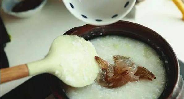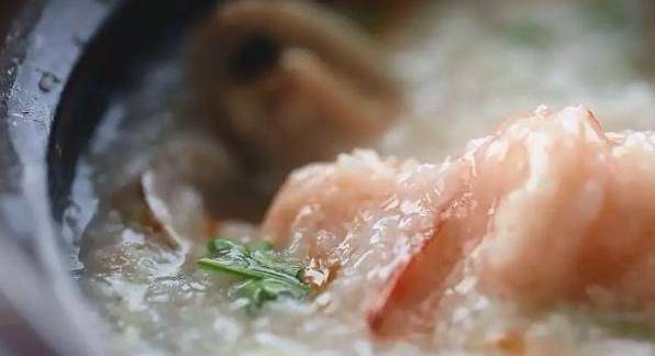 等粥熬的粘稠時,再下入易熟的鮮蝦。如果你喜歡吃螃蟹,待粥底熬好之後再放。殼類海鮮沒有鮮蝦那麼容易熟,要多煮一兩分鐘方便成熟,最後再放鮮蝦,這樣粥也鮮,肉也嫩。