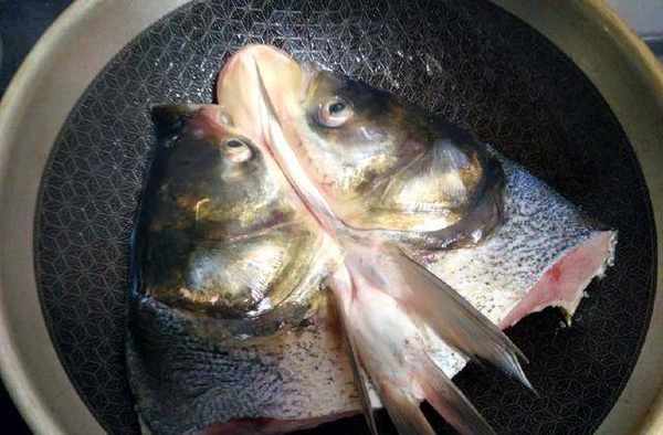 做法:買回來的魚頭清洗幹凈,用廚房用紙擦幹水分,防止煎的時候賤鍋。