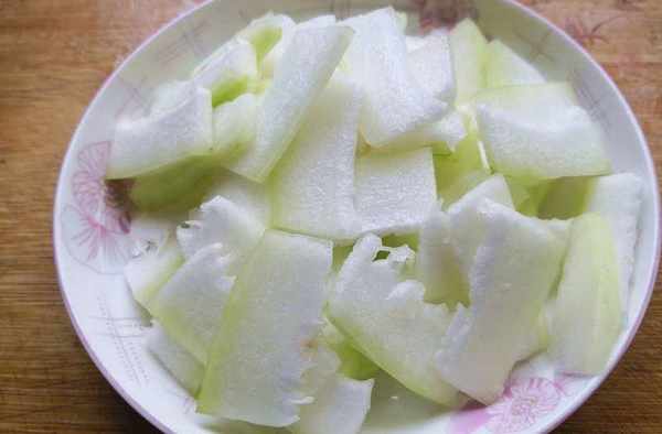 冬瓜切掉老皮,切掉冬瓜瓤,然後切成薄片備用,鍋留底油,放點蔥花海米炒香之後,再放少許的白面炒香,這樣這道湯又濃又白,