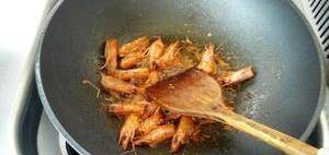 擠壓每個蝦頭,將蝦油擠出,然後烹入料酒~