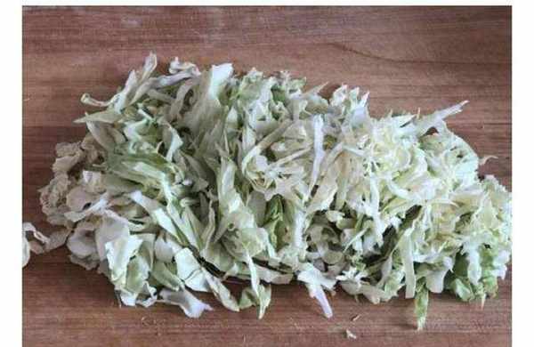 1.首先我們將包菜清洗幹凈,然後用刀切成絲,放置備用。