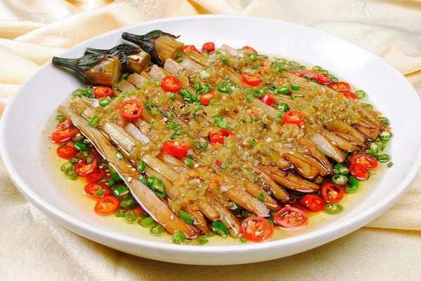 7 起鍋,鍋內加少許油,煸香紅綠米椒圈,放在蒸好的茄子上面即可