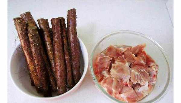 首先我們準備材料:豬排骨400克、山藥400克、大薑1塊、小蔥1根、鹽.黃酒適量。