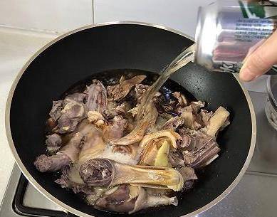 2、另起鍋倒入食用油,油六成熱時把控幹水分的鴨肉倒進鍋中翻炒兩分鐘後盛出備用;鍋裡再加少許食用油,放入幹辣椒、八角、香葉、桂皮、花椒和蔥薑片爆炒出香味,然後加入一勺豆瓣醬翻炒均勻後倒入剛剛炒過的鴨肉,繼續翻炒均勻後倒入一罐啤酒和適量的清水,要沒過鴨肉。鍋裡加適量生抽、老抽、食鹽和白糖調味。