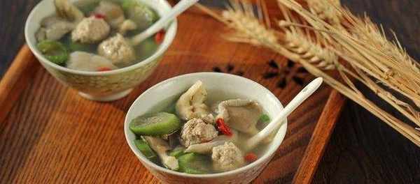 原料:肉餡100克、絲瓜1根、平菇1小顆、薑末、胡椒粉、鹽