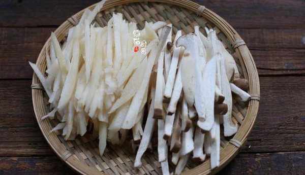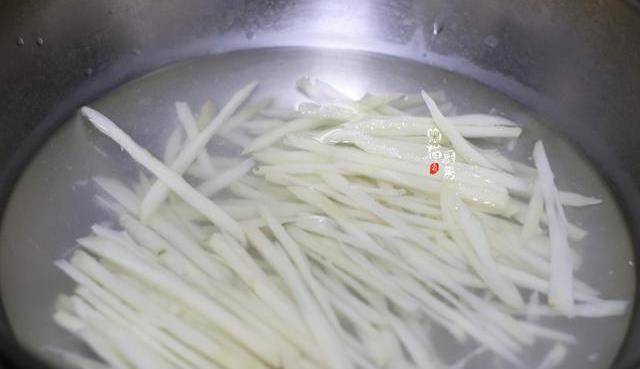 2.把蓮藕切成細絲,杏鮑菇同樣切成細絲備用。