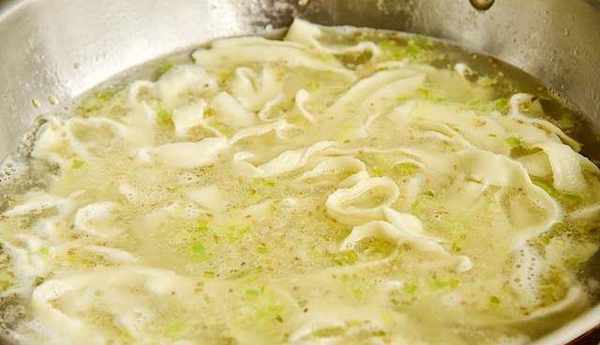 2、加入適量的水煮開,下入刀削面和青菜煮熟。