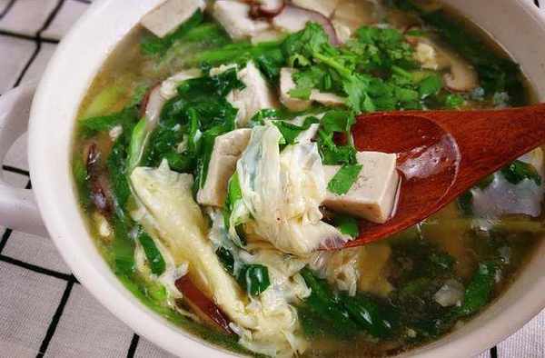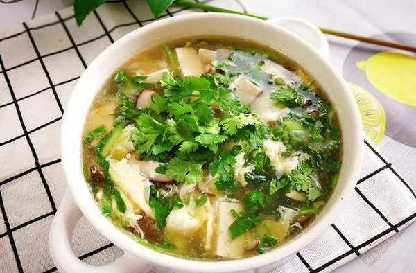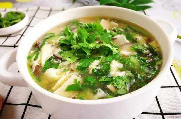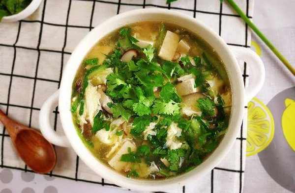 豆腐營養豐富,且低脂肪,有豐富的優質蛋白,還富含多種人體所需的微量元素,且素有“植物肉”之美稱,同時豆腐的消化吸收率達95%以上,在《隨息居飲食譜》一書中就記載豆腐“甘涼,清熱潤燥,生津解毒,補中寬腸,降濁”,除瞭鮮嫩的豆腐,加上上香菇有助於提高機體的免疫力,同時搭配綠油油的油菜,香菜,成就瞭一道香滑可口且易於吸收的素菜湯羹,不僅能配飯吃,也能喝。