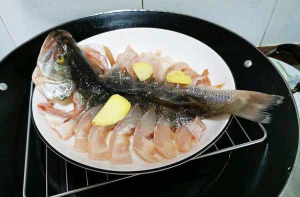 鱸魚買來後清洗幹凈,切上一子花刀,放點蔥薑鹽和料酒,醃制五分鐘,然後把鱸魚放在魚盤上,水開上鍋蒸十分鐘,再燜上三分鐘,