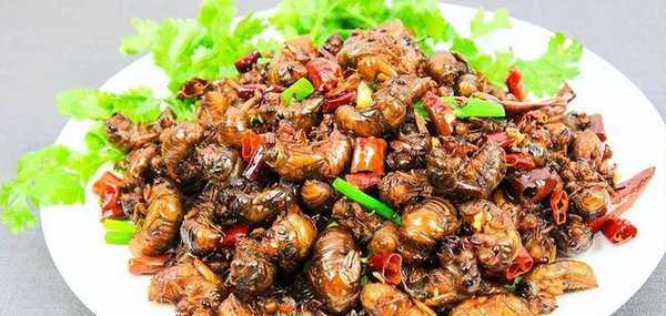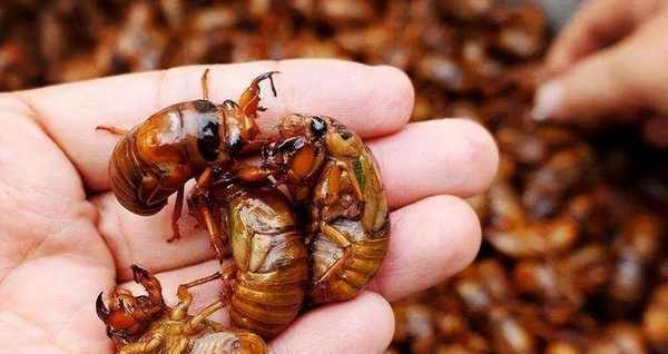 金蟬清洗幹凈,冷水下鍋,放蔥薑精鹽,八角花椒幹辣椒段,煮上十分鐘,然後在原湯裡面自然放涼,這樣金蟬才會入味好吃,