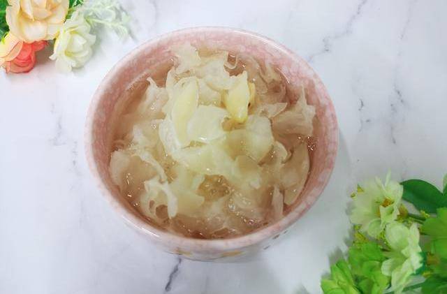 銀耳既能增強人體免疫力,又富有天然植物性膠質,外加其具有滋陰的作用,是可以長期服用的良好潤膚食品。百合具有養陰潤肺,清心安神的功效。兩者結合在一起,功效加倍,可謂是夏天的一大補湯選擇。大熱天的,喝再多的水可能都不如直接來一碗銀耳百合湯來得實在。還不趕緊給自己做一碗。