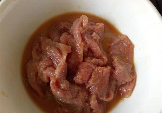 接著我們把牛肉清洗幹凈,完全沒有血水,泡出之後把它切成薄片放入碗中,撒上一些食鹽,醬油,料酒和淀粉攪拌均勻,如果想要讓他的口感更加嫩滑,可以再加上一個雞蛋清,讓雞蛋清均勻的包裹在牛肉片的表面,就可以起到嫩滑牛肉的效果。