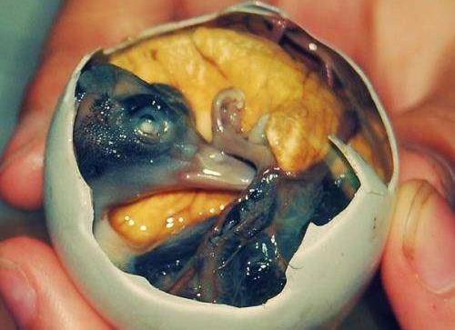 沒錯,毛雞蛋就是雞蛋在孵化過程中受到不當的溫度、濕度或者是某些病菌的影響,導致雞胚發育停止,死在蛋殼內尚未成熟的小雞。聽起來很惡心吧?但是味道卻異常美味呢!放在爐子上烤一烤或者在油鍋裡煎一煎,味道可香呢!