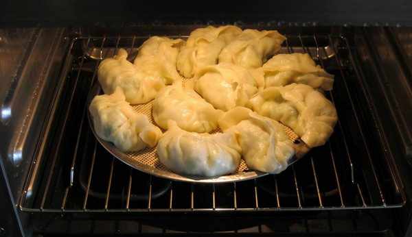 包好的蒸餃放在鋪屜佈的籠屜上邊,蒸箱加水到水位線,再把餃子放進蒸箱內,蒸箱一鍵式蒸面食即可,如果用蒸鍋冷水下鍋,開鍋之後蒸15分鐘即可