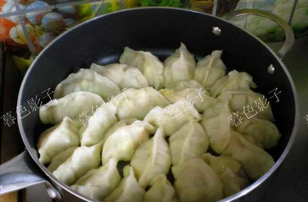 加適量的餡料在面皮裡,二手捏合握緊餃子皮邊緣擠一下,OK餃子就包好咯
