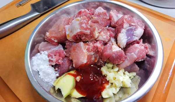 食材:排骨一根,薑片少許,蒜末少許,叉燒醬,蜜糖,蠔油,生抽,花生油,生粉各適量,攪拌均勻,醃制。(如果想要入味一些的,可以提前一天醃制好放冰箱冷藏入味)