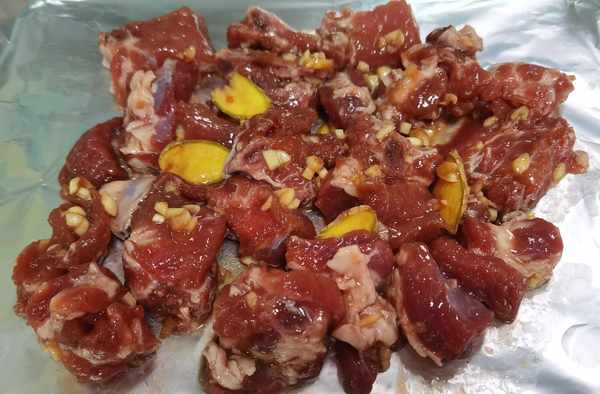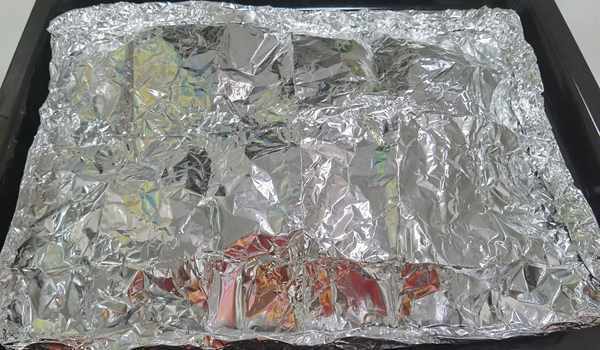 醃制入味後,倒入放瞭錫箔紙的烤盤上