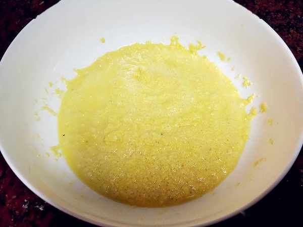 2、把新鮮的玉米放在擦絲器上,擦出玉米漿;