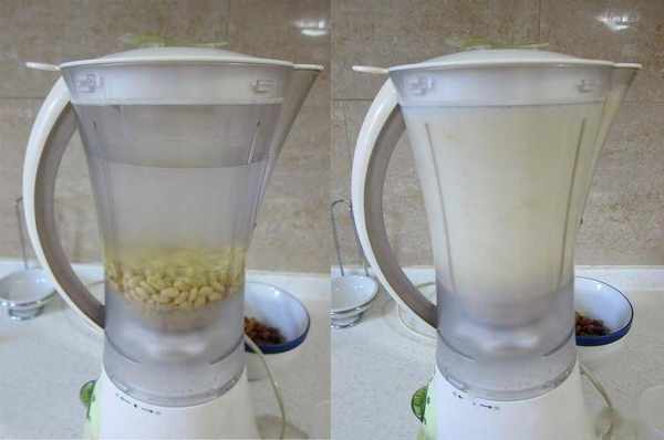 需要提前將100g的黃豆淘洗幹凈,準備一個小盆倒水放入黃豆泡8個小時後,撈出並控幹水分,放進榨汁機,榨成豆汁;