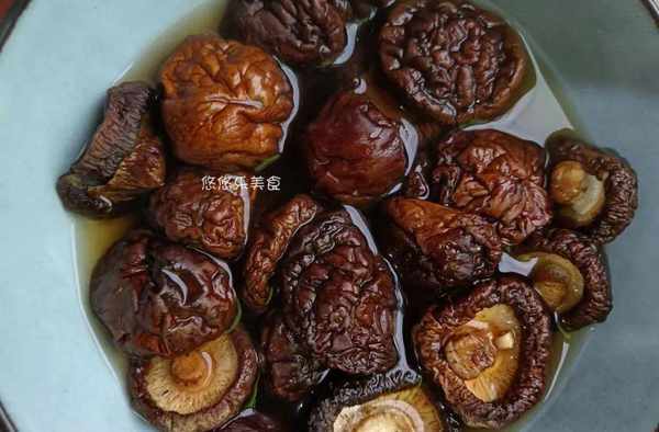4.準備好的香菇要放在盤中,裡面加入適量的溫水。香菇用溫水浸泡,可以更好地去除鮮菇中的堿性物質,香菇要提前1小時浸泡。香菇泡發後撈出放在清水中沖洗幹凈,洗凈放在一旁備用;