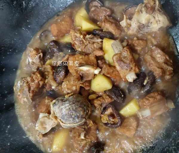 排骨,土豆,香菇,食鹽,鹵料包,食用油,啤酒,大蒜,生薑,甜面醬