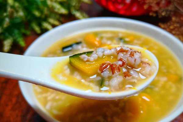 在我們家裡,這就是預防寒冷的"防寒牆",每週喝幾次,身體舒坦又健康。南瓜米粥是一款做法特別簡單的粥,不但做法簡單,食材也比較簡單,只需把南瓜和小米放在一起煮一煮就可以了。南瓜是秋季最常見的蔬菜,也是秋季的時令菜,這個季節,各地的南瓜都開始陸陸續續上市,家家戶戶開始吃起了南瓜菜。南瓜的做法也有很多種,可以熱炒,也可以做南瓜發糕,也可以搭配很多食材做各種各樣的粥喝,尤其和大米、小米、糯米、黑米、紅米等等一起搭配煮粥喝,味道特別爽口。我們這裡不僅生產南瓜,也是小米的優質生產地,所以秋季小米成熟的時候,人們都喜歡喝小米粥,也喜歡用小米粥搭配南瓜一起煮粥,這樣煮出來的粥不但口感爽口,而且營養價值更好,對身體健康也越有利。