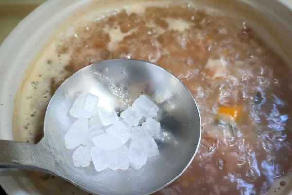6、南瓜煮綿軟了,加入準備好的冰糖。