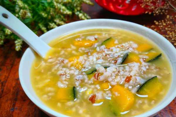莫愁廚路無知己,誰人不識小面姨。大家好,我是小面姨。今天小面姨給大家分享一道"南瓜米粥"的做法。再過兩天,就是中秋節了,秋天就真正進入中秋了,接下來時令又會進入深秋,過了深秋,接著又是初冬,天氣一天比一天要寒冷了。這幾天南方地區的氣溫可能還能高一些,昨天和深圳一個朋友聊天,他說深圳這幾天人們上街還穿短袖。在我們關中地區,短袖已經不能穿了,出門逛街都要穿一件夾克,這樣才能熱乎一些。天凉了,身體不僅要多加衣服防寒,而且要多吃一些暖胃暖身體的美食,這樣才能內外兼顧,預防寒冷,給身體家上一個厚厚地"防寒牆",讓身體在寒冷中也能健康生活。每年秋季天凉之後,我就會隔三差五給家人做南瓜米粥。