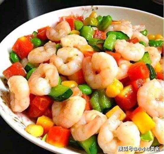 原料:蝦仁350克,黃瓜30克,胡蘿卜30克,玉米粒30克,油1勺,鹽1勺,白酒1勺,淀粉2勺;