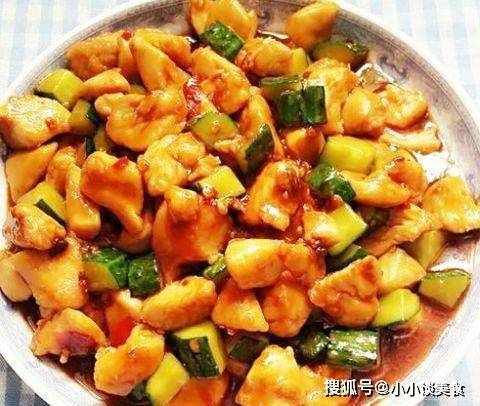材料:雞肉、料酒、極鮮醬油、淀粉、黃瓜、油、胡椒粉、鹽、糖、生抽