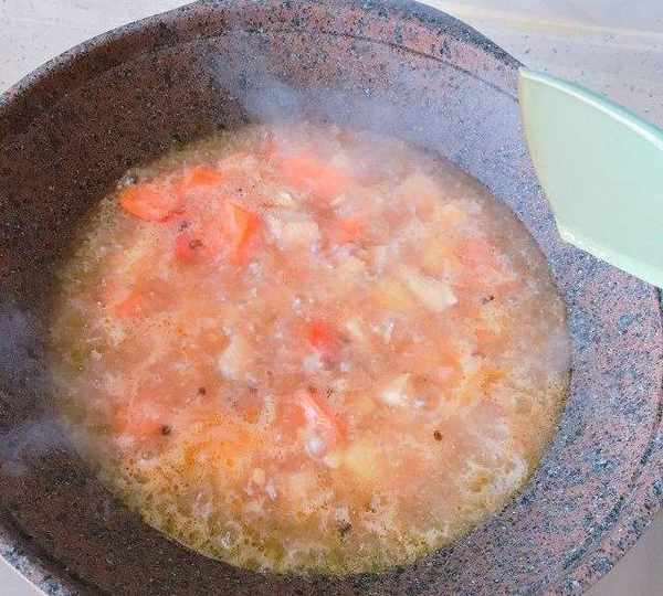 第13步、煮熟,湯變濃就可以加入咖喱塊,這時候要用鍋鏟不停攪拌至咖喱融化,繼續煮5到8分鐘,火不要太大。
