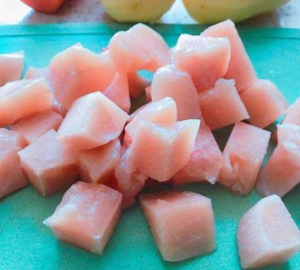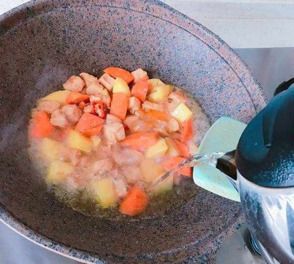 第5步、胡蘿卜切滾刀塊,土豆切塊,紅辣椒切圈(不吃辣可以不放)。