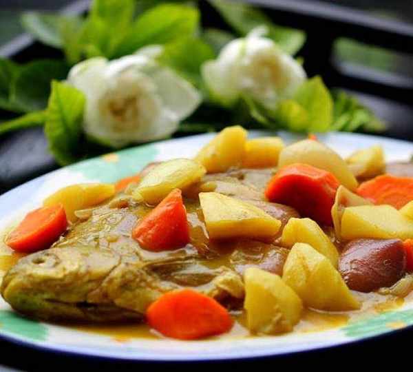 咖喱是由薑黃為主料,另加多種香辛料配制而成的復合調味料,具有特別的香氣,而且頗富營養價值,它具有利汗排毒、促進消化、增進食欲、驅濕散寒、除蟲殺菌的功效。在東南亞許多國傢中,咖喱是必備的重要調料。咖喱是一種美味的調味料,無論搭配肉類、海鮮還是蔬菜,咖喱都能顯出其香氣濃鬱、層次多樣的口感。今天就用咖喱來搭配鯿魚,它是湖北最常見的一種淡水魚(也是我提起準備的河鮮美的食材)就地取材吧,混合著茴香、黃薑、丁香、胡椒...數十種材料的美味咖喱來煮這河鮮食材,煮出來的魚肉嫩嫩的十分入味,蔬菜酥爛,湯汁濃稠,吃到口裡,一種濃厚、辛辣、刺激的味道在舌尖縈繞,香氣也在口中彌漫開來,令人回味無窮,欲罷不能。如果在米飯上澆上厚厚的咖喱汁美餐一頓,誰還說要減肥?