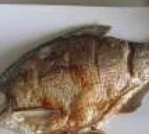 第5步、待魚煎至兩片金黃後撈出放入盤中;